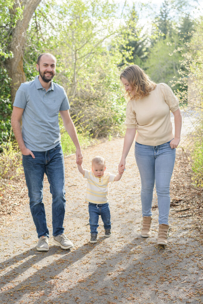 Walking away a little bit from the groups of people we came to a clearing in the trail. The sun shining beautifully through the new growth. Here we walk, laugh, and I see the joy these two have being parents. Like any one year old, their sweet boy is independent, yet yearning for a loving hand. Cautious in a new environment, and always up for an adventure. Especially if it involves running, a playground, or dirt!